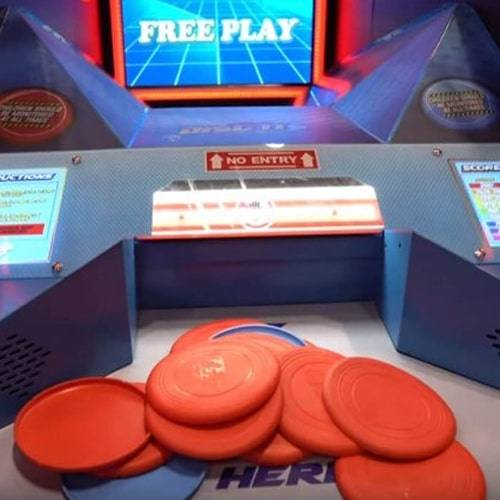 Принцип использования: Гибридная игра, напоминающая фризби на улице. Игроки наводят на цель и бросают диски в экран. Нужно попадать не просто в экран, а в плавающие по экрану купюры.