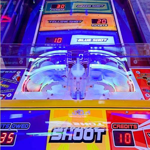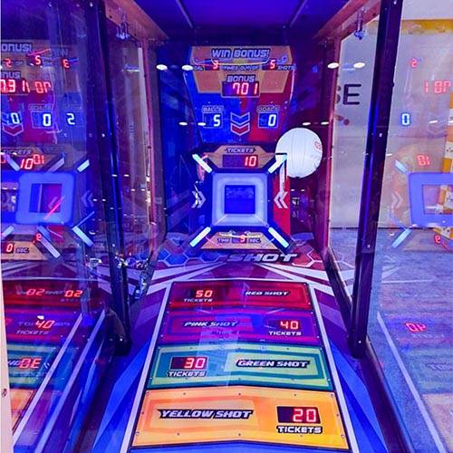 Принцип використання: Ultimate Shot з мішенню, що рухається – це гра на спритність. У грі гравцям потрібно просто потягнути за важіль із потрібною силою, щоб запустити кулі у велику квадратну мішень, яку, здавалося б, легко досягти, але важко освоїти. Оператори можуть з’єднати два пристрої за допомогою Mega Bonus Marquee, і таким чином підняти ігровий процес та потенційний дохід на абсолютно новий рівень. Тоді якщо гравець потрапляє всіма кулями в ціль, він виграє великий бонус, який відображається на таблиці мегабонусу. Гра ідеально підходить для різного віку.